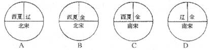 A.北宋与辽 B.北宋与西夏 C.南宋与金 D.南宋与西夏