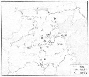 11.张老师在讲授战国七雄形势图时,编了这样一句顺口溜:齐楚秦燕赵魏韩,东南西北到中间。根据这句顺口溜判断,“楚”的位置是