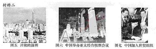 (3)对外开放的基本国策是在哪一次会议上提出的?(1分)上面三幅图中,哪一图片最能反映我国全面融入世界经济,对外开放进入一个更新的阶段?(1分)