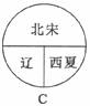 10.图示法是学习历史的一种方法。下面对辽、西夏与北宋并立局面示意正确的是( )