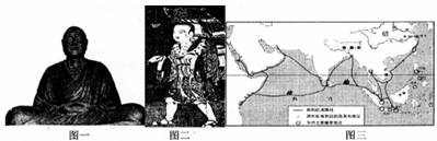(1)图一和图二所描绘的两位唐代文化使者分别是谁?