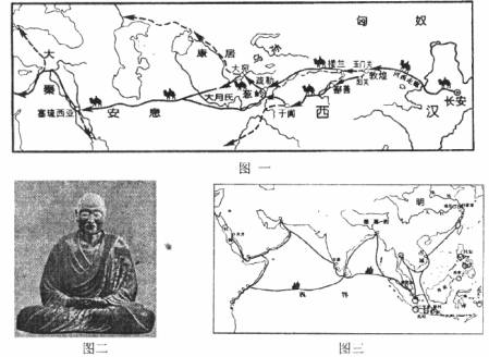 (2)与图二有关的唐朝对外交往的史实是什么?这反映出唐朝实行怎样的对外政策?请再举例说明唐朝对外友好往来的典型史实。 (4分)