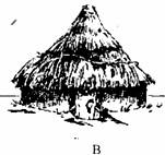 (1)河姆渡原始居民居住的应该是_______图中的房屋,半坡原始居民居住的应该是_______图中的房屋。