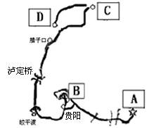 (1)说出图中字母标注的长征途中四个地点。(4分)