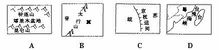 C、广东--珠江水系--广州 D、黄河--华北平原--渤海