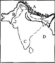A 运河;B 河流; C 山脉;D 高原。