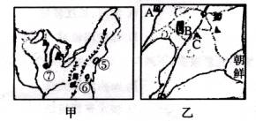 (1)甲图为 国的 工业区,乙图为我国的 工业基地,其中B