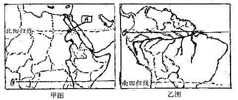 22.下列甲乙两图为世界著名大河的地理示意图,读图回答:(共10分,每空1分)
