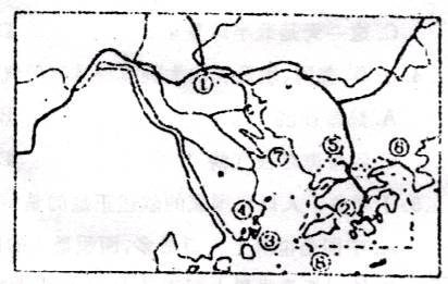 图中的重要港口是 市。