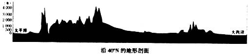 读某大洲沿40°N的地形剖面图,完成30-31题。
