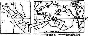 (4)2004年12月,B岛附近发生强烈地震,造成本世纪最大的海啸灾难。本地区频繁发生火山地震,主要原因是________________________________。