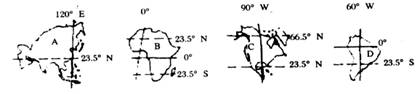 6.某游客在日记中写道:北京时间4时,旭日的霞光就洒满了位于我国最东部的地区乌苏镇。在这个边境小镇的市场上,早已集聚了大量的境外商人。据图判断下列说法正确的是