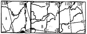 ①乌苏镇位于A图中 ②乌苏镇位于B图中 ③乌苏镇位于C图中