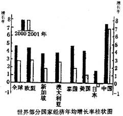 (1)从图中信息可知,2001年和2000年经济增长率差距最大的国家A是 ,2001年出现经济负增长的国家B是 。(2分)