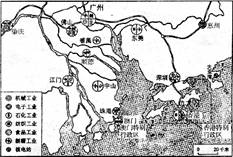(4)台湾经济在60年代开始,形成了“____________-____________-____________”类型的经济,重点发展____________加工工业;其主要分布在________________________。