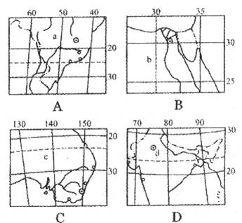 37.下图A、B、C、D分别表示四个国家,读图完成各题。(10分)
