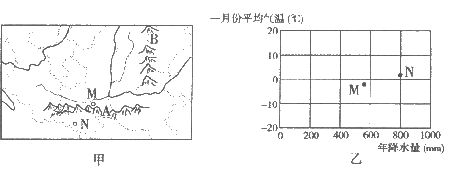 (4)甲图中M、N两城市的气温、降水状况如乙图所示,则它们所属的气候类型分别是_________________ ,_______________