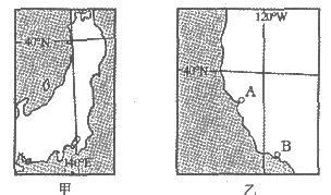 33.读甲、乙两个国家的局部图,回答问题:(4分)