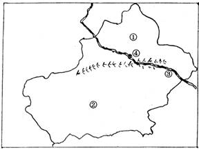 ①__________ ②__________ 铁路:③__________ 城市:④__________