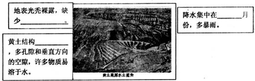 (1)请填空完成下列“黄土高原水土流失自然原因结构图”。(3分)