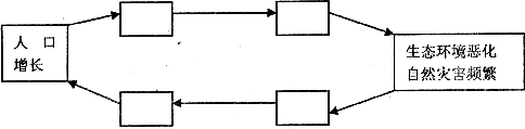 (2)请将下列选项的字母填入“黄土高原人地关系恶性循环示意图”。(4分)
