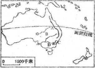 (4)澳大利距的人口和城市主要分布在________________地区。(1分)