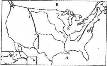 (3)城市E是________________, (1分)读城市周围的农业带为带,(1分)分析此地区形成该农业带的原因(2分)。