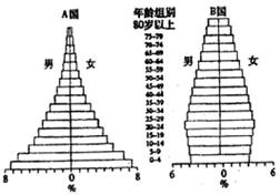 14.根据A、B两国的人口金字塔图,回答。(4分)