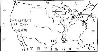 (4)上图B、C、D三个城市中, 是美国汽车工业中心。