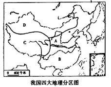 (1)A、B、C、D四大地理区域,是根据各地的地理位置, 和 地理特点的不同划分的。