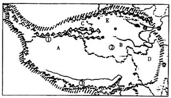 (3)E所在的地形区矿产资源丰富,这里有察尔汗等盐湖,盛产钾盐,还有煤炭、石油、铅锌矿、石棉等多种矿产资源,因此被称为“聚宝盆”,该地区的名称是 。