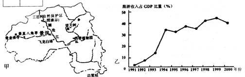 (3)根据乙图中所给信息,简要说明该区l991-2001年旅游业发展的变化特征。