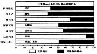 42.读“某些国家主要商品占出口商品总额百分比图”,判断这些国家集中的地区是