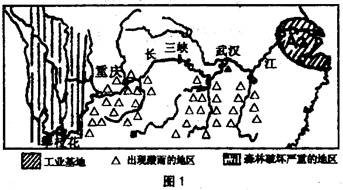 ①沙尘暴严重 ②洪涝灾害严重 ③酸雨严重 ④地震频繁