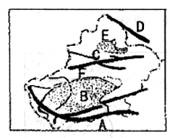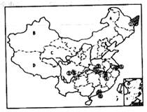 (4)右图中字母所代表的地理事物名称:城市B______,铁路线D______。