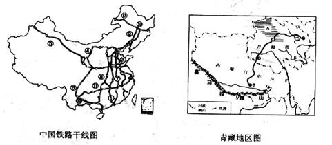 23.读“中国铁路干线图”和“青藏地区图”,回答下列问题。(9分)