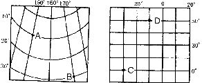 (2)在图中字母A、B、C、D四地中,位于东半球的是 ,位于西半球的是 。