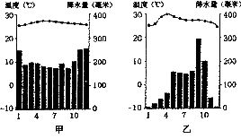 (1)图中甲为 气候,乙为 气候。简述一下甲气候特点为 ;乙气候特点为 。