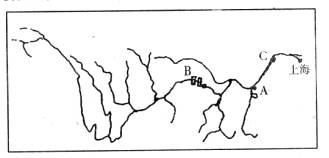 湖泊A________ 水利枢纽B________ 重要港口城市C________。