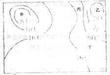 A.甲地是高温中心 B.甲地是低温中心
