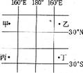 A.20ºW,30ºN B.160ºE,60ºS C.160ºE,60ºN D.0º,30ºS
