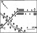 A.小河自北向南流 B.C点位于A点的正西方向