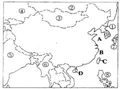 (4)ABCD四省区中,夏季气温最低的是________,原因是___________________________。