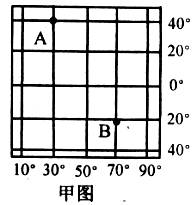 21.读甲、乙经纬网示意图,填写下表。(12分)