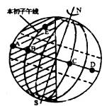 (2)图示的当天,A、B两点中, 点将首先迎来黎明;C、D两点中, 点将首先进入黑夜。