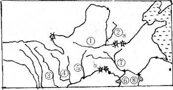(5)图中a、b两处表示的水利枢纽分别是:( )