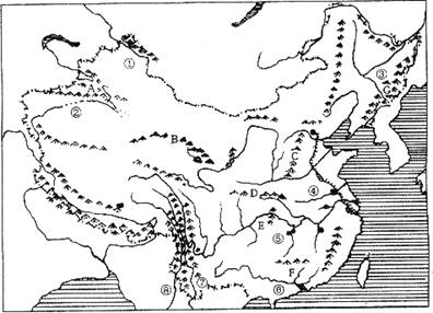 34.下图是我国主要山河分布示意图,据图回答:(7分)