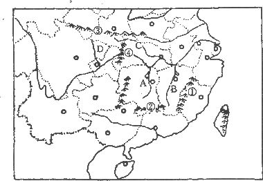 (2)写出河流名称:A. B. C. D.