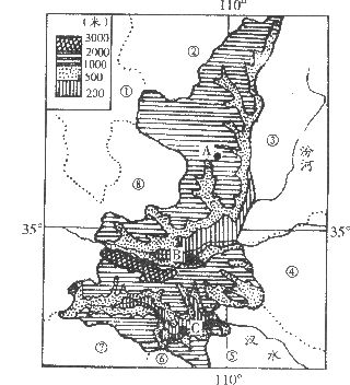 34.下图是陕西省地形分布图,据图回答:(7分)