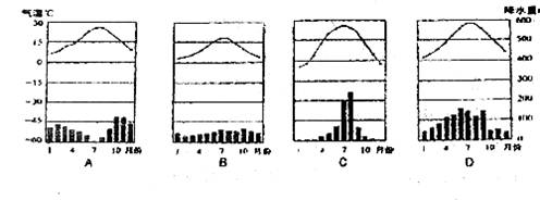 25.反映滨州气候特点的气温曲线、降水柱状图是